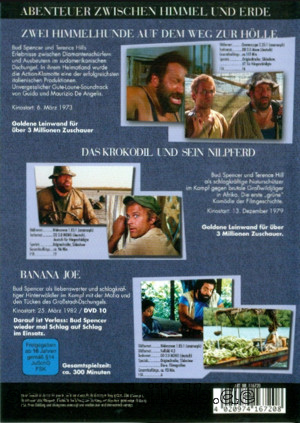 Die DVDs in der "Harte Fäuste - Blaue Bohnen"-Box entsprechen 1:1 den DVD-Erstveröffentlichungen von e-m-s. und somit nicht den ebenfalls erhältlichen neu remasterten Fassungen. Leider stand uns diese Box zur Überprüfung der Version nicht zur Verfügung, aber es ist zu vermuten, dass es sich hier genauso verhält.
