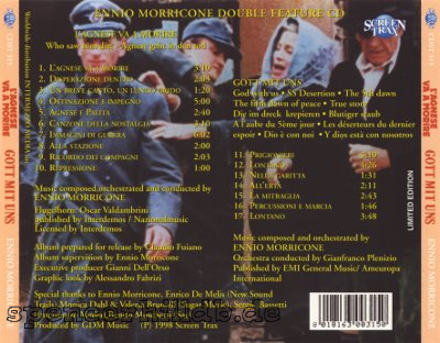 Diese LP enthält den Soundtrack zu den Filmen Agnes geht in den Tod (L'agnese va a morire, 1976) und Die im Dreck krepieren (Gott mit uns (Dio è con noi), 1969).