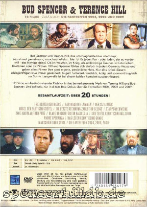 Diese DVD enthält 12 Filme (eigentlich nur 11, denn Hügel der blutigen Stiefel ist in zwei Fassungen enthalten), die allerdings auf nur 5 DVDs verteilt wurden. Alle Filme wurden schon diverse Male zuvor von KSM veröffentlicht, alle auch in besseren Versionen. Exklusiv in dieser Box ist lediglich die Dokumentation über das Bud Spencer und Terence Hill Fantreffen 2009 in Leipzig.