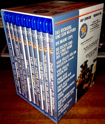 Diese Box enthält zehn gemeinsame Filme des Duos Bud Spencer und Terence Hill auf Blu-ray. Alle diese Blu-rays sind zuvor auch schon einzeln veröffentlicht worden. Wer allerdings jetzt erst mit dem Sammeln der Filme beginnt und mit den gemeinsamen Filmes des Duos beginnen möchte, dem bietet diese Box einen sehr guten Einstieg.