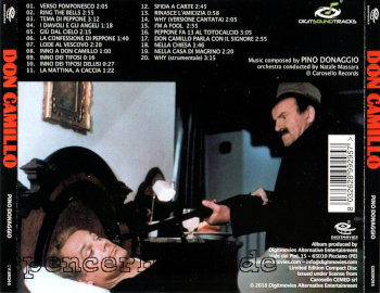 Es handelt sich um die erste Veröffentlichung des Soundtracks auf CD überhaupt. Die Trackliste entspricht der italienischen LP von 1984. Während damals allerdings die Songs "Lode al vescovo" (Track 7) und "Inno a Don Camillo" (Track 8) in auf Englisch gesungenen Versionen enthalten waren, so beinhaltet diese CD die Songs in italienischer Sprache.