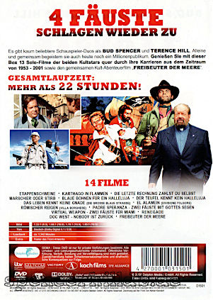 Diese Box enthält 14 Filme mit Bud Spencer und/oder Terence Hill, die auf 5 DVDs gequetscht wurden. Alle Filme wurden schon mehrere Male zuvor veröffentlicht. Die Filmauswahl entspricht zu großen Teilen der Kultstar-Box aus dem Jahr 2019. Gegenüber der Vorgänger-Box dazugekommen sind lediglich "Doc West - Nobody ist zurück" (Nur der erste Teil ist in der Box, Teil 2 fehlt!) uns "Freibeuter der Meere". Dafür fehlt hier "Aladins Abenteuer" und das Bonusmaterial.