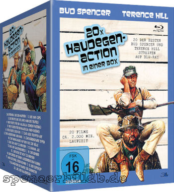 Alle Blu-rays dieser Box sind zuvor schon einzeln veröffentlicht worden. Von Vier Fäuste für ein Halleluja und Django und die Bande der Gehenkten befinden sich sowohl die Original Kinofassung und die Comedy-Version in der Box. Es sind also nur 18 verschiedene Filme enthalten.