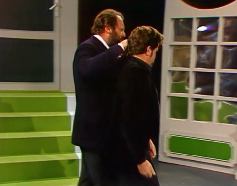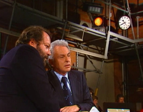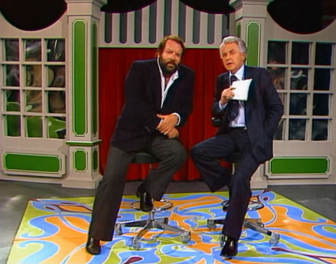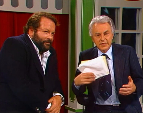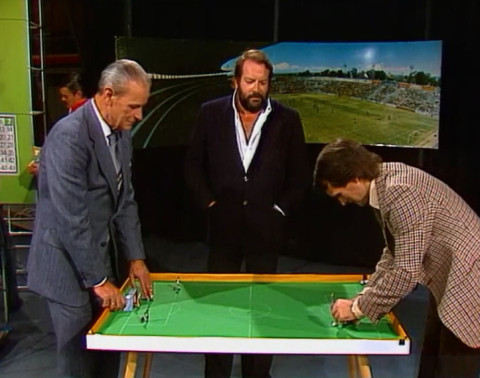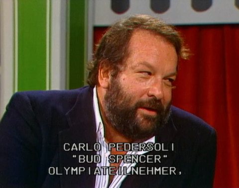 On 8 October 1977, Bud Spencer was a guest in the ZDF sports studio. Presenter Hanns Joachim Friedrichs welcomed Bud right at the start of the show, while Bud watched eagerly as former German internationals Franz Binder and Wolfgang Overath played a game of Tippkick. The interview with Bud Spencer began after a good 40 minutes. Bud first presented his new film Charleston, before talking about his sporting career and his views on the Italian national football team, which had lost its World Cup qualifying match against Germany that day. After almost exactly 9 minutes, the conversation ended and Bud Spencer said goodbye.