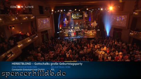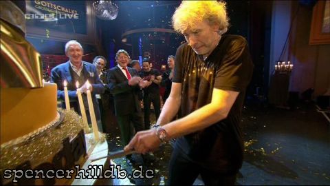 Am 18.05.2015 wurde Entertainer und Moderator Thomas Gottschalk 65 Jahre alt. Ihm zu Ehren organisierte der Sender RTL eine große Geburtstagsparty, die Live im Fernsehen übertragen wurde. Durch die Party führte Gottschalk selbst mit Moderatorin Barbara Schöneberger. Neben diversen Gäste, die Gottschalk in der Show persönlich gratulierten gab es dabei zwischendurch immer mal wieder Einspieler von Persönlichkeiten die Gottschalk per Videobotschaft gratulierten. Nach gut 57 Minuten war es dann soweit und auch Terence Hill gratulierte Thomas Gottschalk per Videobotschaft zum Geburtstag. Der Gruß dauerte 35 Sekunden und neben dem Geburtstagsgruß machte Terence noch einen Scherz über seine verletzte Hand und betonte die lange Zeit, die sie sich nun schon kennen.