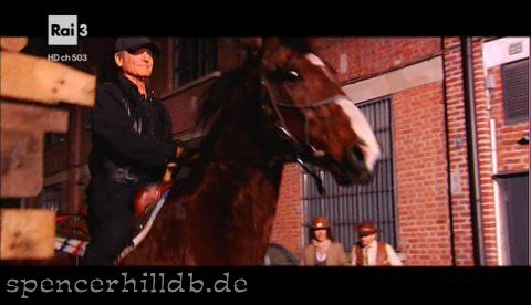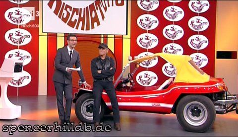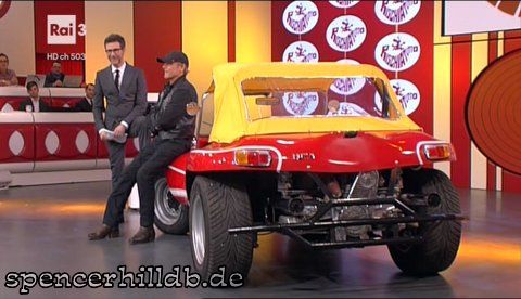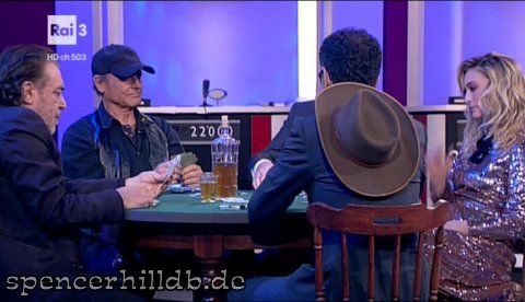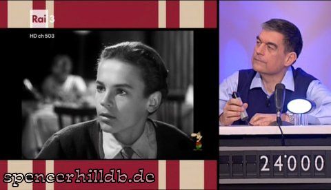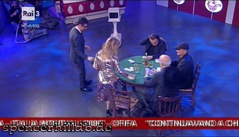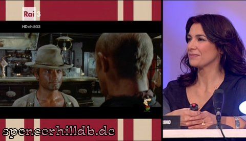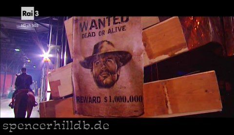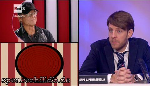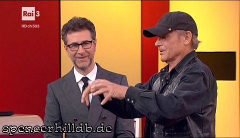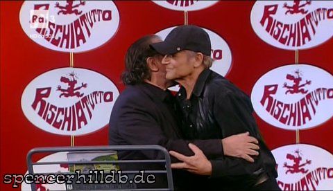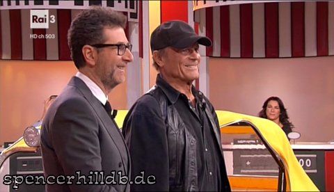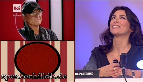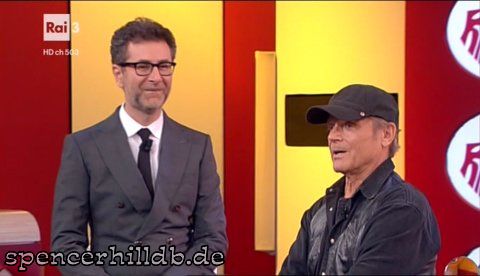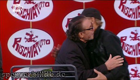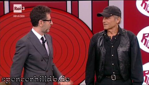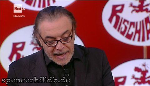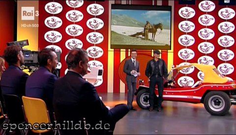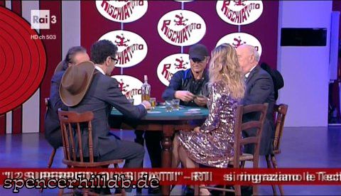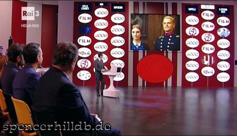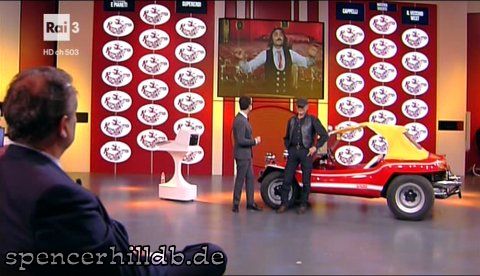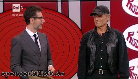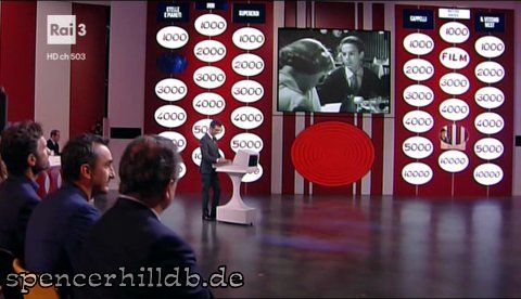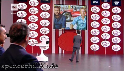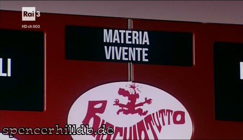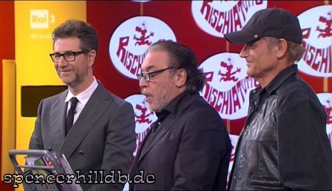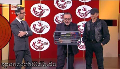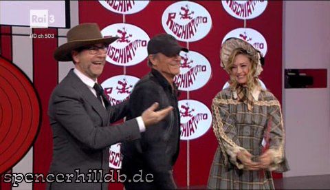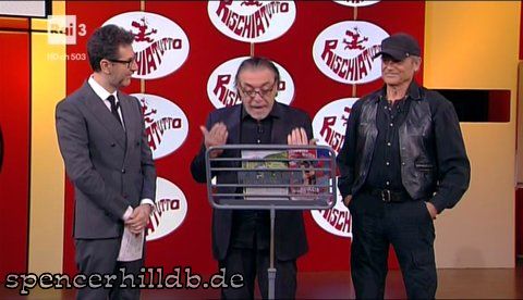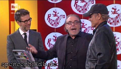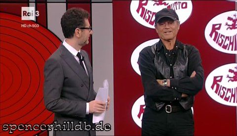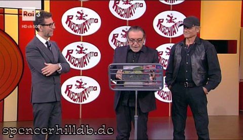 Rischiatutto ist die italienische Variante der US-Quizshow Jeopardy. Bei diesem Quiz gibt es eine Ratewand mit sechs verschiedenen Themengebieten, aus dem die drei Kandidaten Fragen mit verschiedenen Geldwerten auswählen können. Je höher der gewählte Geldwert, desto schwieriger ist die Frage dahinter. In Italien gibt es nun die Besonderheit, dass es auf dieser Ratewand ein sogenanntes "lebendiges Thema" gibt. Hinter diesem Thema steckt meist ein Prominenter, der persönlich im Studio ist und den Kandidaten dann selbst die Fragen über seine Person stellt. In der Ausgabe vom 08.12.2016 durfte Moderator Fabio Fazio niemand geringeren als Terence Hill als "lebendiges Thema" begrüßen. Nach ca. 35 Minuten wird Terence Hill mit ein paar Filmausschnitten angekündigt, bevor er schließlich auf einem Pferd in das Studio reitet. Nach einer sehr herzlichen Begrüßung nimmt Terence als "lebendiges Thema" hinter der Ratewand Platz und die Raterunde beginnt. Während dieser Runde werden folgende Fragen zum "lebendigen Thema" gestellt, die Terence den Kandidaten persönlich vorliest: