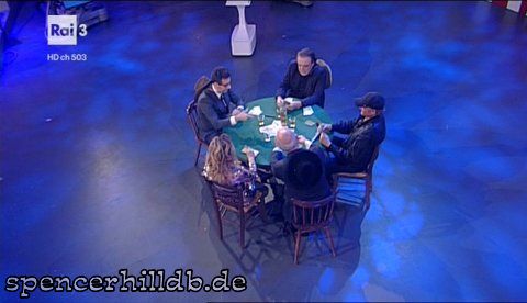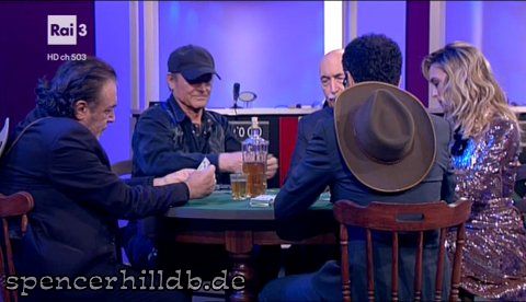 Nach dem Ende der Raterunde wird die Endszene aus Zwei wie Pech und Schwefel gezeigt und anschließend fährt Terence Hill in einem original Buggy aus dem Film auf die Bühne. Im folgenden Gespräch wird schließlich noch die Chorszene aus dem Film gezeigt und Terence erzählt ein wenig über die Dreharbeiten mit Bud Spencer. Anschließend kommt das Gespräch auf Terence Hills neuen Film La chiamavano Maryam und es wird exklusiv ein erster Trailer zu dem Film gezeigt. Danach geht es noch kurz um das Thema Essen in den Filmen und es werden auch verschiedene Ausschnitte dazu gezeigt. Direkt danach kommt Nino Frassica auf die Bühne und liest einen sehr unterhaltsamen Weihnachtsbrief vor, der an Don Matteo geschrieben wurde. Nach dieser Einlage setzen sich Hill und Frassica ins Publikum und schauen sich das Finale des Quiz an. Nach dem Finale folgt dann die Verabschiedung und Terence Hill, Nino Frassica, Fabio Fazio, Co-Moderatorin Carolina Cresentini und Schiedsrichter Ludovico Peregrini setzen sich für eine Partie Poker an einem Tisch zusammen.