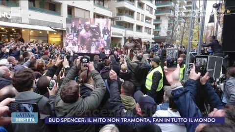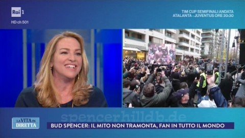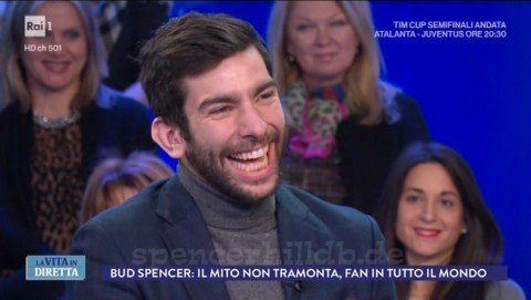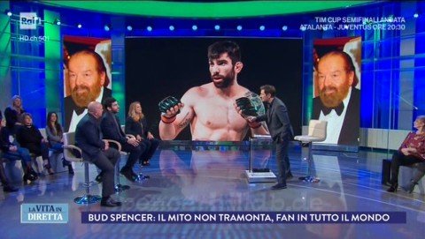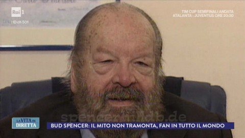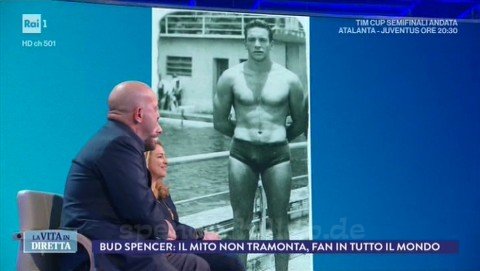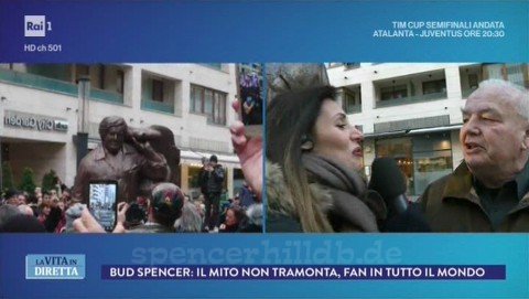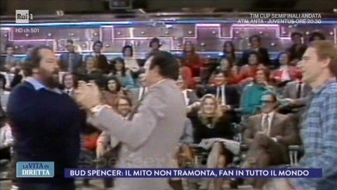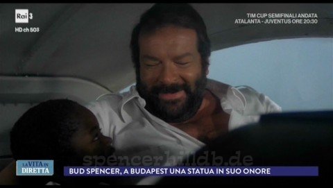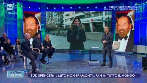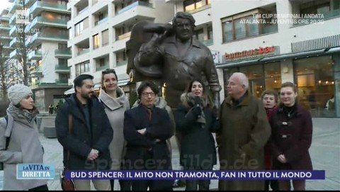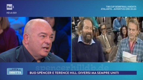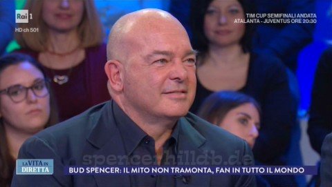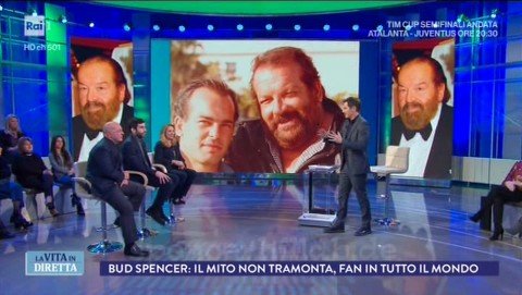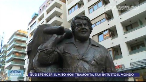 Am 30. Januar 2018 durften die Moderatoren Francesca Fialdini und Marco Liorni Bud Spencers Kinder Cristiana und Giuseppe, sowie Bud Spencers Enkel Carlo, Jr. in ihrer Nachmittags-Show begrüßen. Das Thema ihres Gesprächs war die unglaubliche Karriere und das abwechslungsreiche Leben Bud Spencers und wie es dazu gekommen ist, dass er zu einer Ikone auf der ganzen Welt wurde. Hierzu wurde live nach Budapest zur Bud Spencer Statue geschaltet, wo Außenreporterin Lucia Loffredo die Statue präsentierte, einige eingespielte Interviews zeigte und berichtete, dass praktisch immer irgendwelche Leute Bilder von der gigantischen Statue machen würden. Cristiana berichtete dann auch von der Eröffnung der Statue und es wurden auch Bilder von der Zeremonie gezeigt. Des Weiteren ging es dann noch kurz um die Sportkarriere von Carlo, Jr. und die Tatsache, dass er der einzige der Familie sei, der wie Bud Leistungssport betreibt. Er hegt aber derzeit keinerlei Ambitionen Schauspieler zu werden, sondern möchte sich auf den Sport konzentrieren. Giuseppe erzählte schließlich noch, welche Bedeutung Terence Hill für Bud hatte und welch großartiges Duo die beiden gebildet haben. Aufgelockert wurde das Gespräch durch Ausschnitte aus alten TV-Shows mit Bud, alten Interviews und natürlich auch Filmausschnitten. Nach gut 18 Minuten war der wirklich unterhaltsame Beitrag dann vorbei.