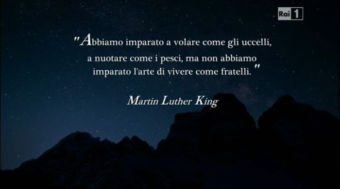 Wir haben gelernt wie die Vögel zu fliegen, wie die Fische zu schwimmen, aber wir haben nicht gelernt, wie Brüder zu leben. Abbiamo imparato a volare come gli uccelli, a nuotare come i pesci, ma non abbiamo imparato l'arte di vivere come fratelli.