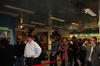 Den Tag nach Schwäbisch Gmünd startete Bud Spencer in Pforzheim. Auch hier stellte er seine Biografie vor und lud zu einer Signierstunde in die Buchhandlung Thalia ein. Wie auch schon bei den vorherigen Signierstunden, herrschte auch in Pforzheim wieder großer Andrang. Dieser war auch hier wieder so groß, dass leider nicht alle Autogrammwünsche erfüllt werden konnten. Auch Nils Waldmann, der uns die Bilder aus Pforzheim zur Verfügung gestellt hat, hatte leider Pech und wurde nicht mehr in den Laden hinein gelassen.