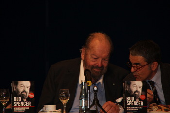 Direkt im Anschluss an die Signierstunde wurde im CongressCentrum noch zu einem Podiumsgespräch geladen. Hier plauderten Bud Spencer und der Verlagschef von Schwarzkopf & Schwarzkopf unter anderem über die neu erhältliche handsignierte Sonderausgabe der Biografie und dem im Jahr 2012 kommenden zweiten Band der Biografie. Mit diesem Podiumsgespräch ging Bud Spencers langer Tag in Schwäbisch Gmünd schließlich zu Ende.