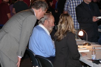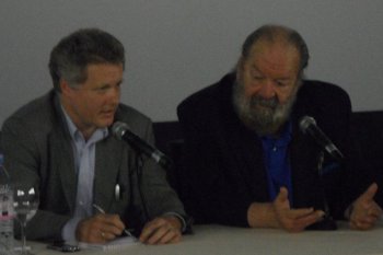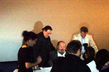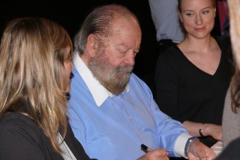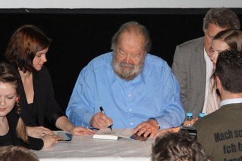 Auch der Tag in Düsseldorf folgte den auch schon aus den anderen Städten bekannten Muster. Die Signierstunde begann mit etwa 10 Minuten Verspätung gegen 16:10 Uhr. Bud signierte im größten Saal des UCI-Kinocenters in bewährter Manier ein Buch nach dem anderen und das sogar länger als eine Stunde, denn in Düsseldorf wurde kein wartender Fan ohne Autogramm nach Hause geschickt. Direkt im Anschluß an die Signierstunde begann auch hier das Podiumsgespräch. Da war es schon fast 17:30 Uhr. Bei dem Podiumsgespräch zeigte sich Bud in Plauderlaune und erzählte fast 90 Minuten aus seinem Leben. So war es schon fast 19 Uhr als er sich verabschiedete und unter Standing Ovations den Saal verließ. Auch hier im Düsseldorfer Kino hatten die verbliebenen Fans dann noch die Möglichkeit den Tag mit einer Sondervorstellung des Films "Plattfuß am Nil" ausklingen zu lassen.