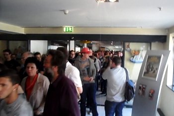 Die letzte Station seines Deutschlandbesuchs im März 2012 führte Bud Spencer nach Kaiserslautern. Ein letztes Mal stand das bewährte Programmdoppel Signierstunde und Podiumsgespräch auf dem Programm. Auch hier war der Start für 16 Uhr angesetzt und auch hier standen wieder hunderte Fans an, um sich eine Biografie von ihrem Idol signieren zu lassen. Der Signierstunde folgte wieder das Podiumsgespräch und nach diesem lief auch in im Kaiserslauterner UCI-Kino noch "Plattfuß am Nil" zum Abschluß. Etwas Neues gab es in Kaiserslautern also nicht, aber wieder gingen mehrere hundert Menschen glücklich nach Hause. |