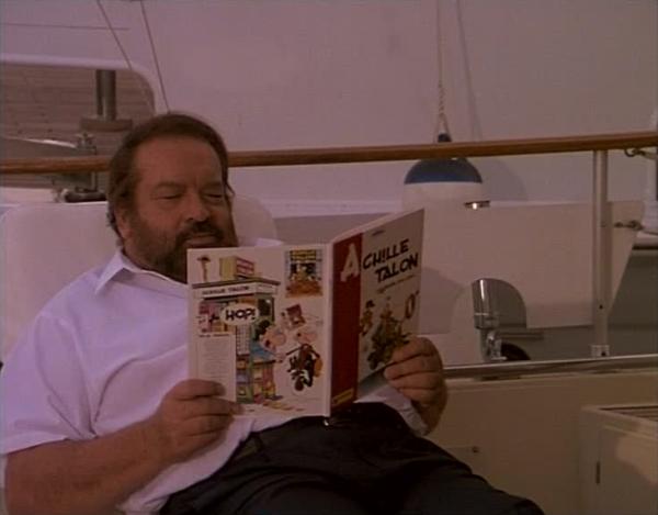 In der Folge Falsches Spiel liest Bud auf dem Boot in einem Comic der französischen Reihe "Achille Talon". Es handelt sich hierbei um "Achille Talon aggrave son cas", dem zweiten Band der Reihe, der ursprünglich im Juli 1967 veröffentlicht wurde. Das Exemplar, dass Bud liest stammt allerdings aus einer Neuauflage des Comics vom April 1981. |
