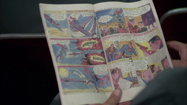Terence liest während des theoretischen Unterrichts bei Captain McBride einen Superman-Comic. Die Ausgabe ist leider nicht zu erkennen, wohl aber, dass dieser Comic in spanischer Sprache geschrieben ist. |