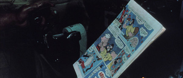 Hier liest zwar niemand in einem Comic, aber Bud hat hinter der Windschutzscheibe seines Trucks einen Comic liegen. Dabei handelt sich um "Walt Disney's Adventures of Mickey Mouse - 50th Birthday Edition", veröffentlicht im Jahr 1978. |