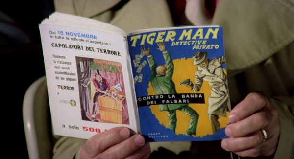 Caputo liest zuerst in der Abflughalle und später auch im Flugzeug nach Kairo einen italienischen Comic. Es handelt sich um den Band "Contro la banda dei falsari" aus der Reihe "Tiger Man". |