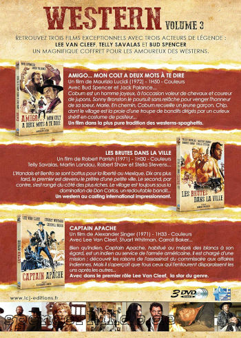 Dieses 3-DVD-Set enthält neben dem Bud Spencer-Western Halleluja... Amigo noch die beiden nicht Spencer/Hill-Western "Kein Requiem für San Bastardo" (A Town Called Bastard, GB/E 1971) und "Captain Apache" (Captain Apache, GB/E 1971).