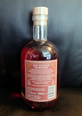 | Das Feuerwasser ist der erste Likör aus der Spencer/Hill-Linie von St. Kilian. Es handelt sich um einen Chili-Zimt-Likör mit einem Alkoholgehalt von satten 33%. |