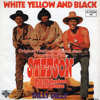 Soundtrack des Films "Stetson - Drei Halunken erster Klasse" (Il Bianco, il Giallo, il Nero, 1974). Der Titelsong "White Yellow and Black" läuft in Zwei sind nicht zu bremsen in der Pistazieneis-Szene im Hintergrund.