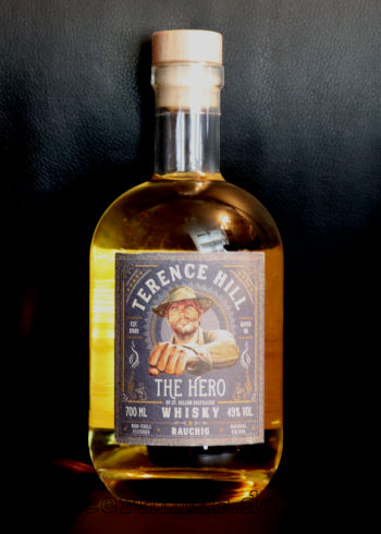| Ende 2021 gingen mit der "The Hero"-Reihe auch die ersten Terence-Hill-Whiskys von St. Kilian am Start. Diese rauchige Variante hat einen Alkoholgehalt von 49%. |