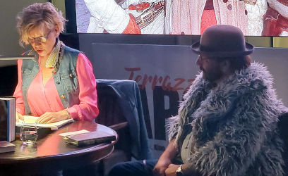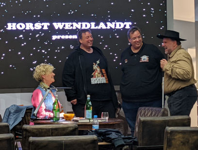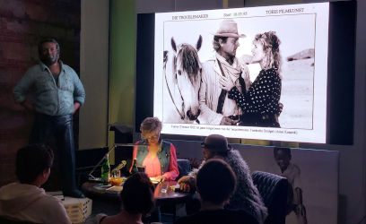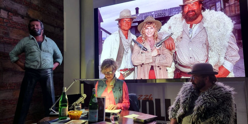 On Friday 13 May 2022, we welcomed German actress Anne Kasprik to the Bud Spencer Museum. Anne Kasprik starred in 1995's The Fight before Christmas alongside Bud Spencer and Terence Hill and married while filming on set in Santa Fe. So she had some anecdotes to tell around the filming. She also brought along her biography Ich aus dem Osten (engl: I'm from the east) from which she read a few passages. At 7:30 p.m. the museum opened its doors to the event participants, at 8 p.m. moderator Andreas Mintert welcomed the visitors and a very relaxed and entertaining evening began at the Terrazza Napoli, the museum's small cinema hall.