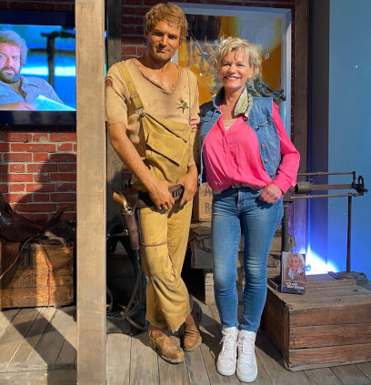 Anne next to the Terence Hill figure She still adores Terence :-)