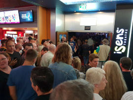 Seinen ersten Auftritt in der österreichischen Hauptstadt hat Wien am frühen Abend im Cineplexx Wienerberg. Ab 18 Uhr moderiert Terence Hill seinen Film hier in insgesamt drei Sälen an und erzählt auch dabei wieder seine für diese Tour passenden Anekdoten. Einen roten Teppich gibt es hier im Cineplexx nicht und so haben die Fans außerhalb des Saals nicht sehr viel von Terence. Nach seinen Anmoderationen muss Hill dann auch schnell weiter, denn weniger als zwei Stunden später muss er schon im nächsten Kino sein.