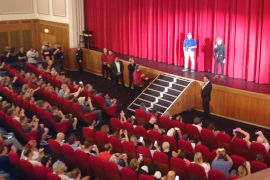 Zum Abschluss seiner Rede rät er noch den Zuschauern nicht einzuschlafen, da die Sitze so bequem seien :)