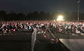 An die 5000 Fans warten schon seit den frühen Abendstunden auf dem Trainingsgelände der Fußballer von Wormatia Worms auf Terence Hill, der hier um 20:30 Uhr seinen neuen Film vorstellen wird. Die Organisation des OpenAirs verläuft in der Folge aber leider sehr chaotisch. So hat man es komplett versäumt einen abgeschlossenen Sicherheitsbereich vor der Leinwand einzurichten und so drängen sich schon Herrscharen von Fans direkt vor der Leinwand und lassen Terence gar keine Chance ein paar Worte an die Fans zu richten. Die Veranstaltung steht schon kurz vor dem Abbruch, als es hektisch dann doch gelingt mit ein paar Zaunelementen eine kleine Sicherheitszone zu schaffen. So ist es schon fast 21 Uhr als Terence Hill schließlich doch noch das Mikrofon ergreift. Dabei steht er auf einem wackeligen Plastikstuhl, damit die Fans ihn wenigstens einigermaßen erahnen können, da das Gelände ansonsten komplett ebenerdig ist und keine Bühne aufgebaut wurde. Terence Rede wird zur Verärgerung der Fans dabei nur akustisch übertragen. Die Leinwand, die auch ein Bild übertragen könnte ist zwar da, bleibt aber aus. Der Großteil der Fans bekommt Terence an diesem Abend also gar nicht live zu sehen, was natürlich für einige Verärgerung sorgt. Die Fans zu Hause haben dagegen die Chance Terence' Rede in Bild und Ton zu sehen, denn ins Internet wird ein Livestream übertragen. Warum die Organisatoren in Worms das nicht auch vor Ort hinbekommen, bleibt ein Geheimnis. Terence selbst kann natürlich nichts dafür und wird während seiner gut zehnminütigen Ansprache von den Fans auch sehr gefeiert. Mit Beginn der Filmvorführung zieht sich der Schauspieler zurück und kurze Zeit später verlassen auch schon viele Fans das Areal wieder. Das Bild auf der Leinwand ist aufgezoomt und pixelig, viele Details an den Rändern fehlen. Die Veranstaltung in Worms ist mit großen Abstand die schlechteste der Tour.