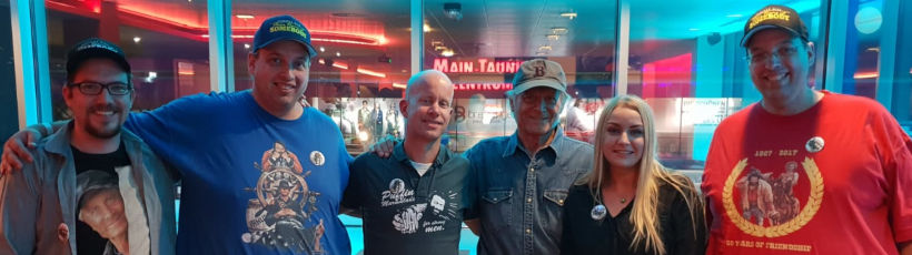 Bei unserer Ankunft im CineStar um 17:15 Uhr wartet nur eine bescheidene Gruppe Fans bereits vor dem Kino. Da es keinen roten Teppich gibt, bildet sich auch keine große Schlange. Zum Start der Vorstellung um 18:30 Uhr ist das Kino dann aber natürlich rappelvoll. Begleitet von Marcus Zölch betritt Terence Hill gut gelaunt die Bühne und berichtet von der Drehortsuche in Almeria und darüber wie er und Bud Spencer sich damals dort kennengelernt haben. Unter großem Applaus verlässt er den Saal schließlich wieder und der Film beginnt. Terence wiederholt seine Ansprache direkt im Anschluss im zweiten Saal und muss dann auch direkt weiter nach Sulzbach. Der Zeitplan am heutigen Abend ist sehr eng gesteckt.