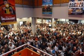 War es in Frankfurt noch ganz entspannt was die Fanmassen vor dem Kino angeht, so zeigt sich in Sulzbach ein ganz anderes Bild. Schon eine Stunde vor Beginn der Vorstellung ist die Lobby des Kinos voller Menschen und ein Durchkommen zur Kasse kaum noch möglich. Terence Hill hält sich vor der Vorstellung im VIP-Bereich ein Stockwerk über der Lobby auf und so warten die Fans an der Treppe darauf, dass Terence dort hinunter kommt. Sehr zur Freunde der Masse zeigt er sich auch auf der Treppe und begrüsst die Fans. Zum Vorstellungsbeginn läuft die Sache dann genauso ab wie in den Kinos zuvor. Terence betritt den Saal, geht unter lautem Applaus zur Bühne, begrüsst das Publikum und erzählt Anekdoten rund um seinen neuen Film. An diesen Abend im Kinopolis wiederholt sich dieser Ablauf in drei Sälen. Zufällig werden wir außerhalb der Säle noch Zeuge einer schönen Szene. Ein gehbehinderter junger Mann hat Tickets für den Film, kann aber mit seinem übergroßen Rollstuhl nicht in den Saal. Terence wird über den Vorfall berichtet und begrüsst den jungen Mann daraufhin persönlich und spricht ihm sein Bedauern aus. Der Chef vom KSM schreibt sich zudem die Adresse des jungen Fans auf und verspricht ihm den Film alsbald als Blu-ray nach Hause zu schicken. Schön, dass trotz des engen Zeitplans der Tour noch Zeit für Menschlichkeit bleibt.