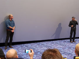 Nach seinen Auftritten in Pasching geht es für Terence Hill direkt weiter ins nahegelegene Linz, wo er ab 20:30 Uhr den Film in drei weiteren Sälen anmoderiert. Terence wird im Cineplexx sehr gut abgeschirmt betritt durch die Hintertür das Kino. Immerhin bekommt aber jeder beim Betreten des Kinosaals ein gedrucktes Autogramm. Im Kino wird Terence von Marcus Zölch angekündigt. Er erzählt, wie er Bud Spencer das erste Mal getroffen hat. Als er mit seiner total netten Geschichte fertig ist, wird er auch schon wieder von der Security umzingelt und aus dem Saal begleitet. Der Film hat mir persönlich dann sehr gut gefallen. Definitiv mal ganz was Anderes. |