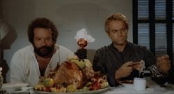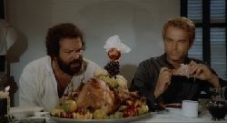 Mein Sohn, man hat die Drei begnadigt. Sie sind jetzt außer Gefahr, also kannst du essen!