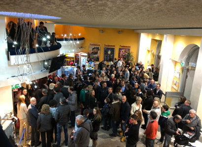 Afterwards we went back to inside the cinema and shortly before 9 pm Terence started to present the film in the big hall. He then did the same in the other three halls before returning to the great hall under the cover of darkness. Here the film ran already approx. 30 minutes. Already during the film there was thunderous applause from the audience at the bar fight scene. After the film Terence was celebrated with standing ovations. After a short drink stop in the VIP area, Terence went out to the fans to sign more autographs, talk to them and take photos. Around 11:30 pm Terence Hill left the cinema and finished the evening with a glass of wine. The next morning he went directly to Milan, where he was expected as a guest in the TV show Che tempo che fa. |